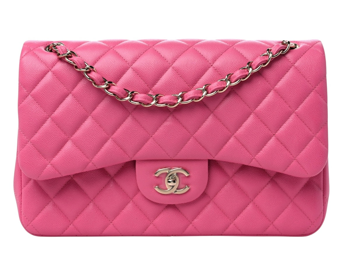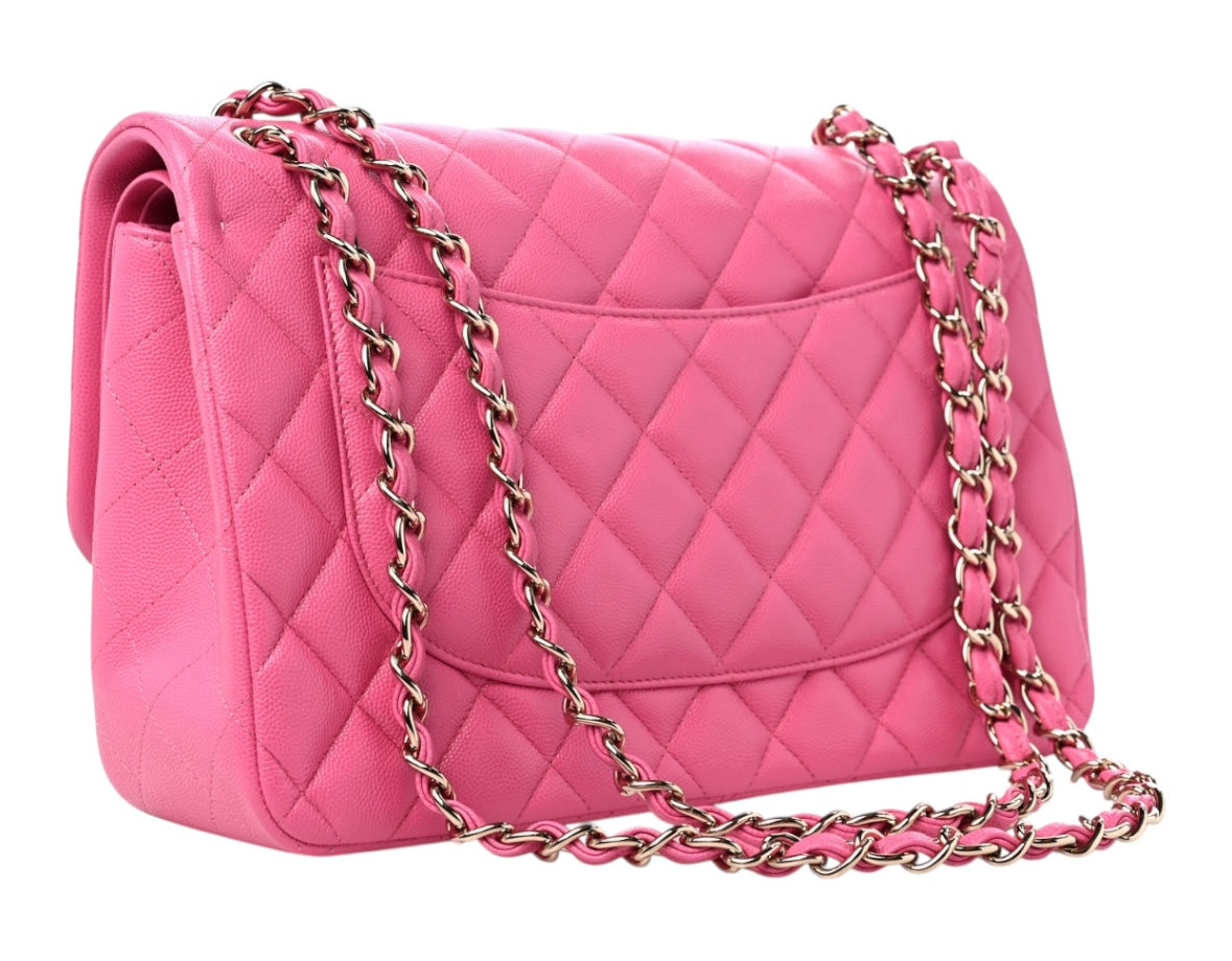 Chanel Pink Caviar Quilted Jumbo Double Flap Bag With GHW