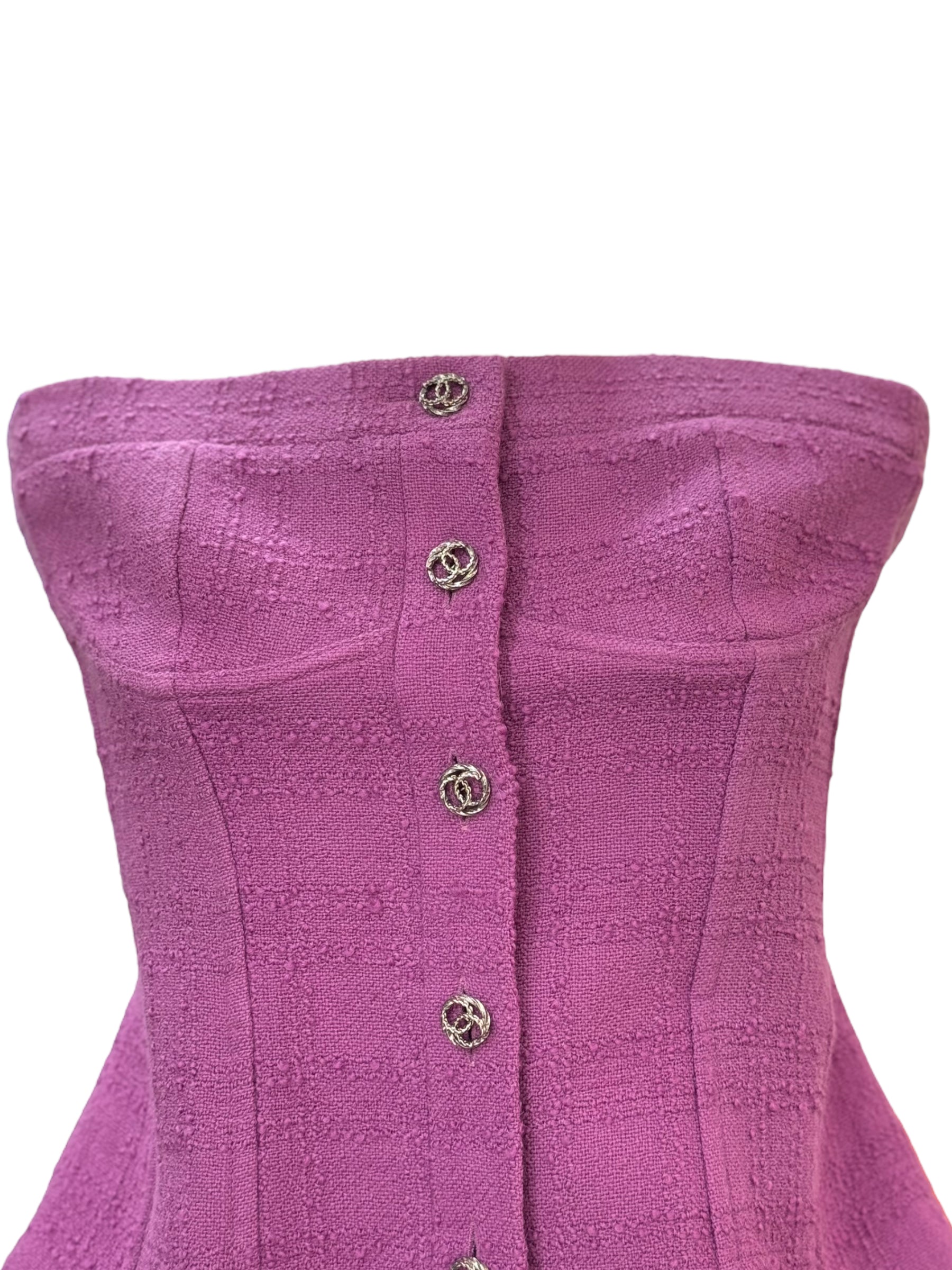 Chanel Purple Tweed Strapless Bustier With CC Buttons