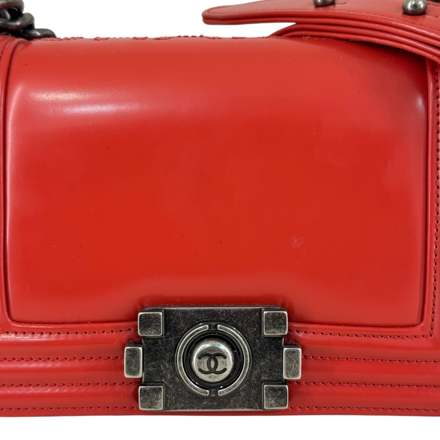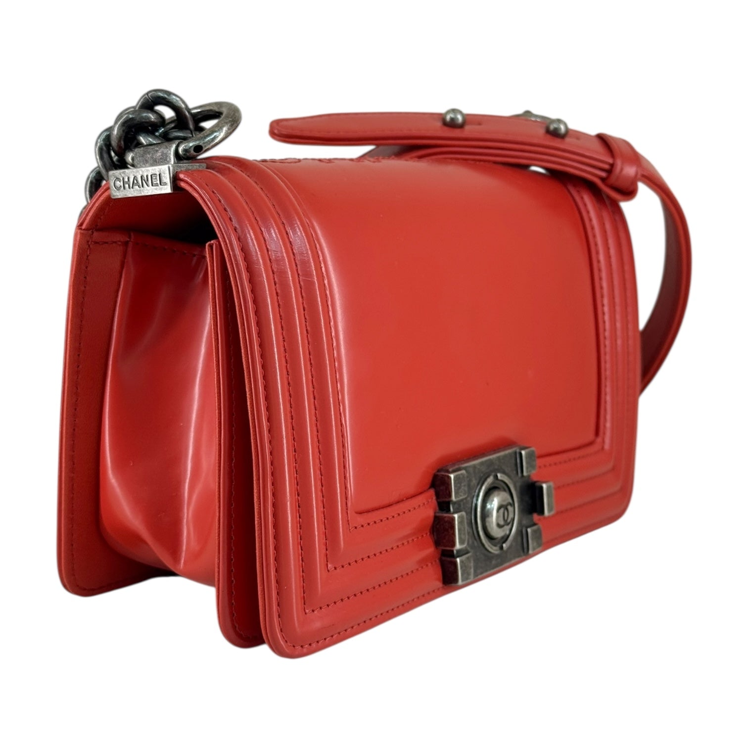 Chanel Red Glazed Calfskin Small Boy Bag With Chanel Stitching In Ruthenium Hardware