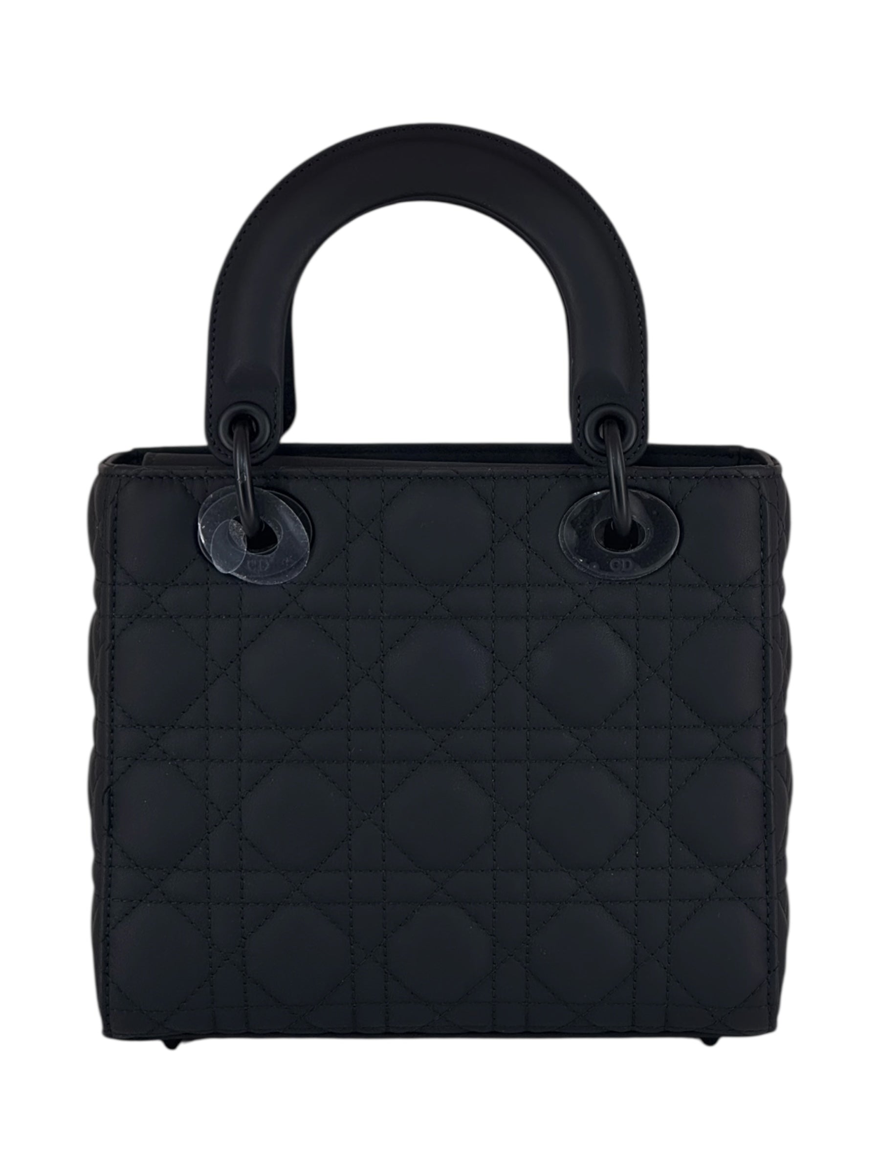 Christian Dior Black Ultra Matte Calfskin Cannage Small Lady Dior Bag With Strap
