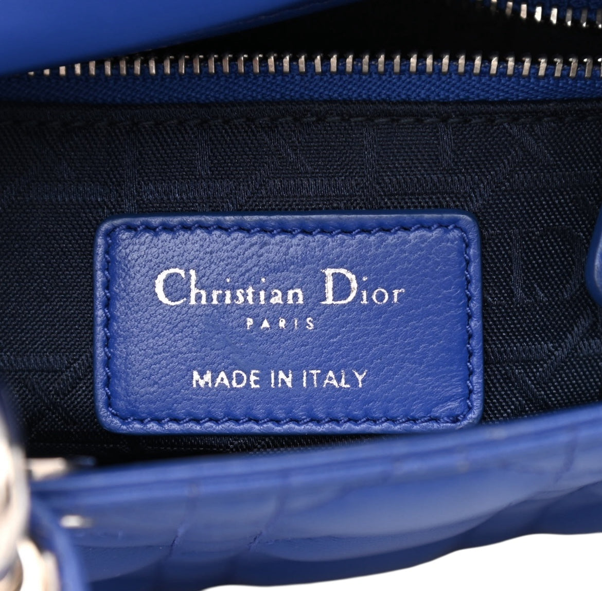 Christian Dior Blue Lambskin Quilted Mini Lady Dior Bag