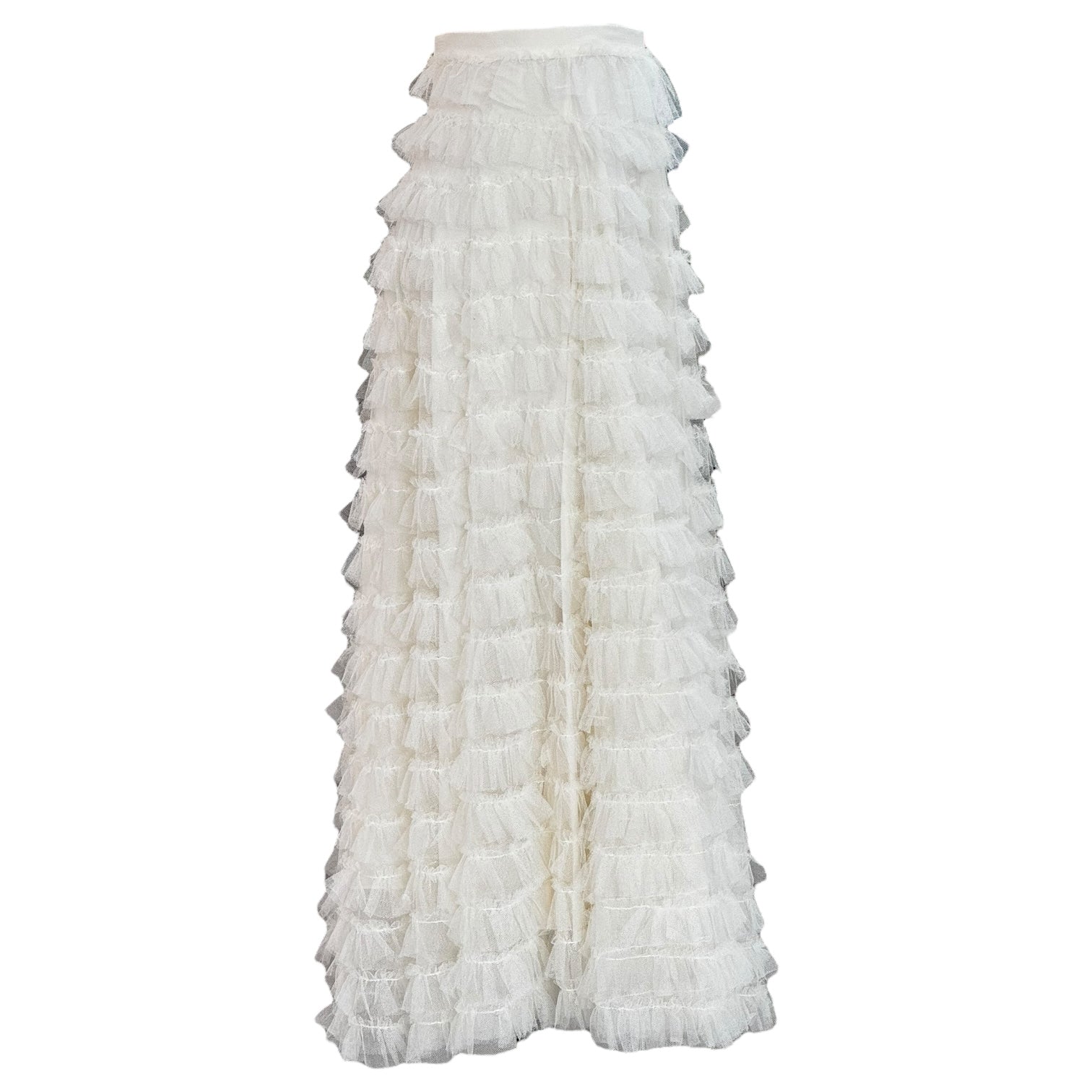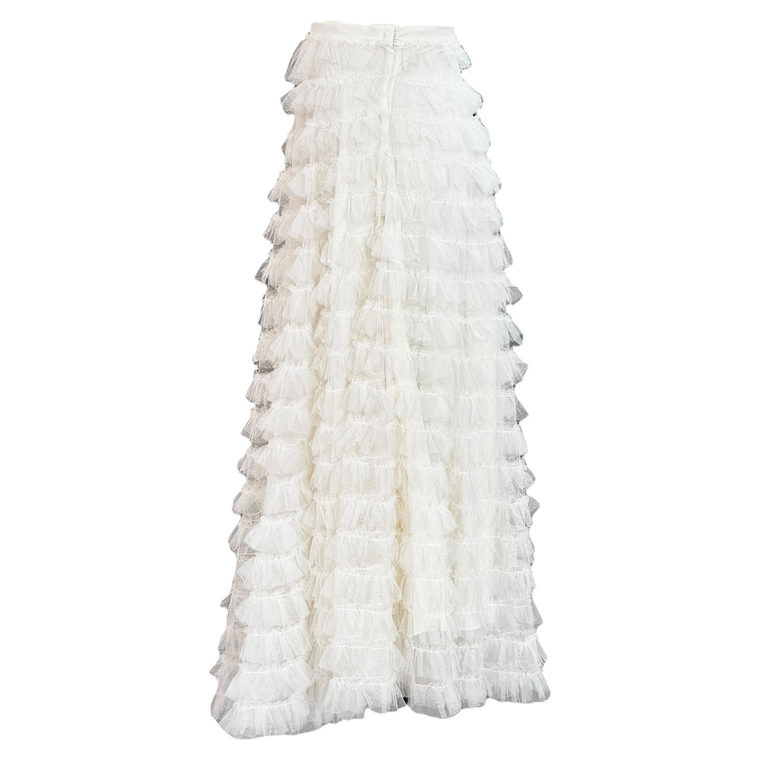 This Christian Dior white maxi skirt is a timeless statement of elegance, featuring cascading tiered ruffles that create graceful movement. The high-waisted silhouette elongates the figure, while the full-length design offers a romantic, ethereal look. Crafted from lightweight, airy fabric, it’s perfect for both sophisticated daytime wear and evening occasions. Pair with a silk blouse or fitted knit for effortless Parisian chic.