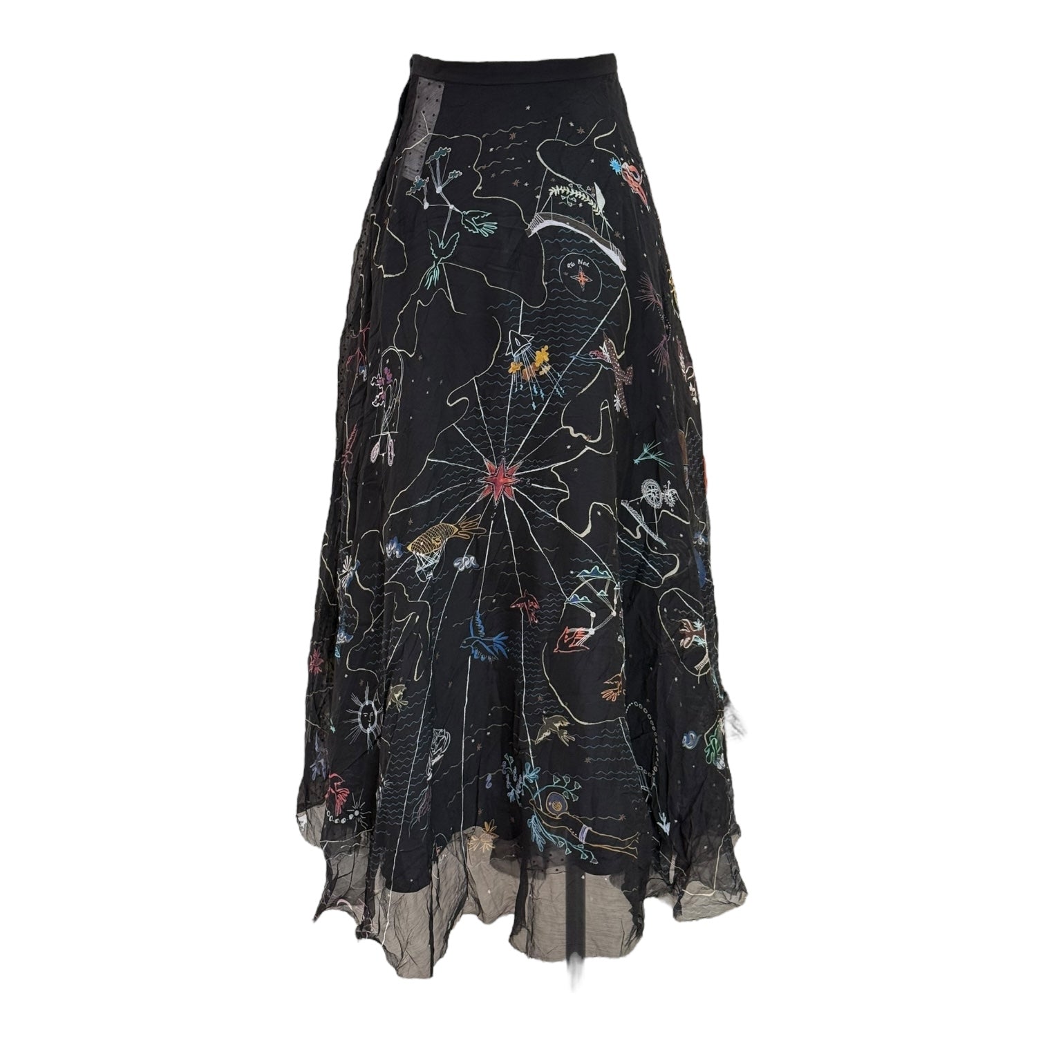 Christian Dior Black Embroidered Tulle Maxi Skirt