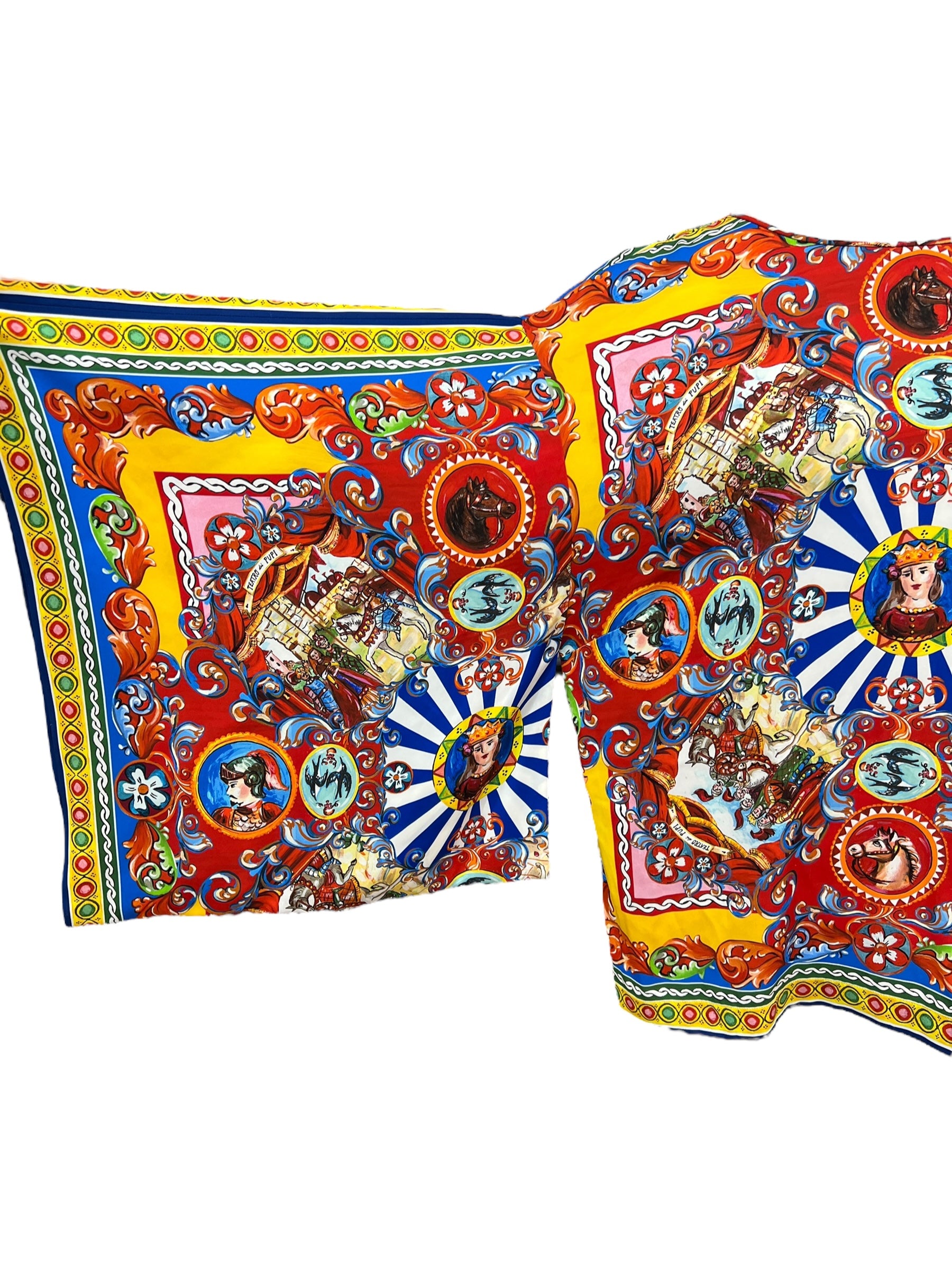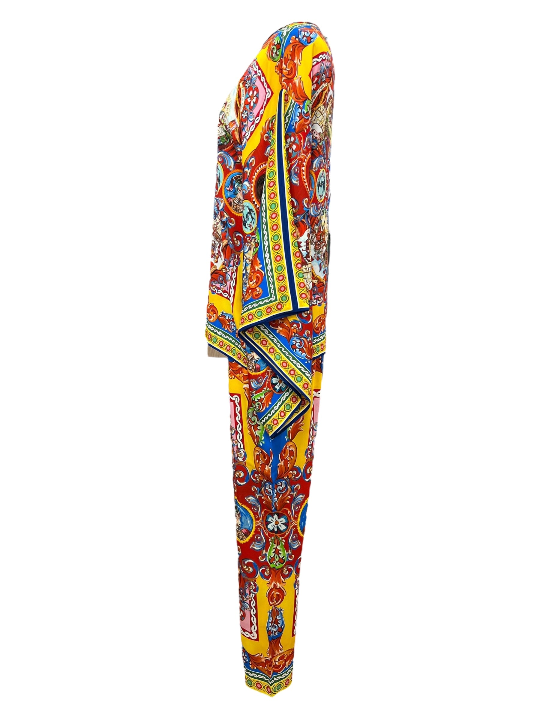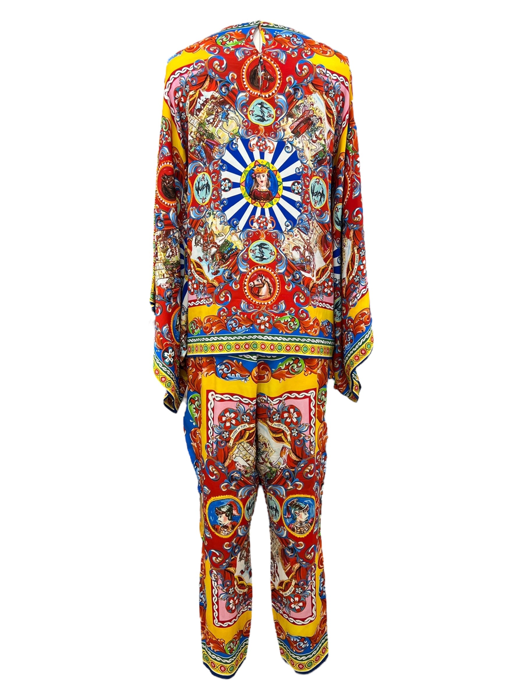 Dolce & Gabbana Carretto Silk Kimono Top And Trousers Set