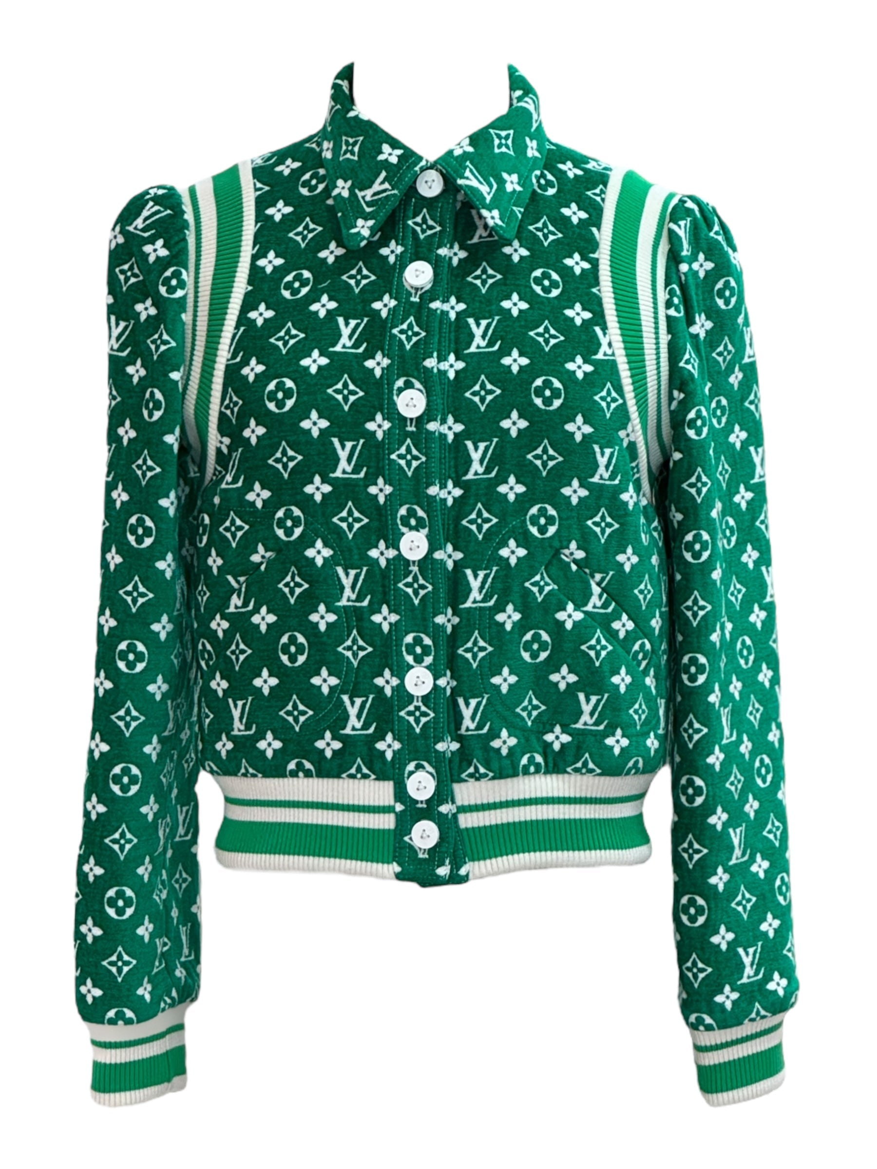 Louis Vuitton Green Monogram Button-Up Knit Jacket With Striped Trim