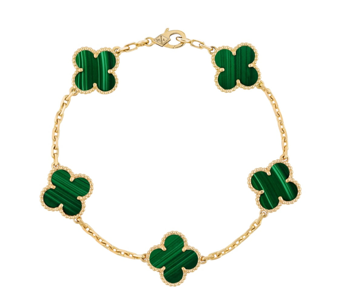 Van Cleef & Arpels Vintage Alhambra bracelet with five agate motifs, showcasing iconic design, elegant craftsmanship, and timeless luxury appeal.