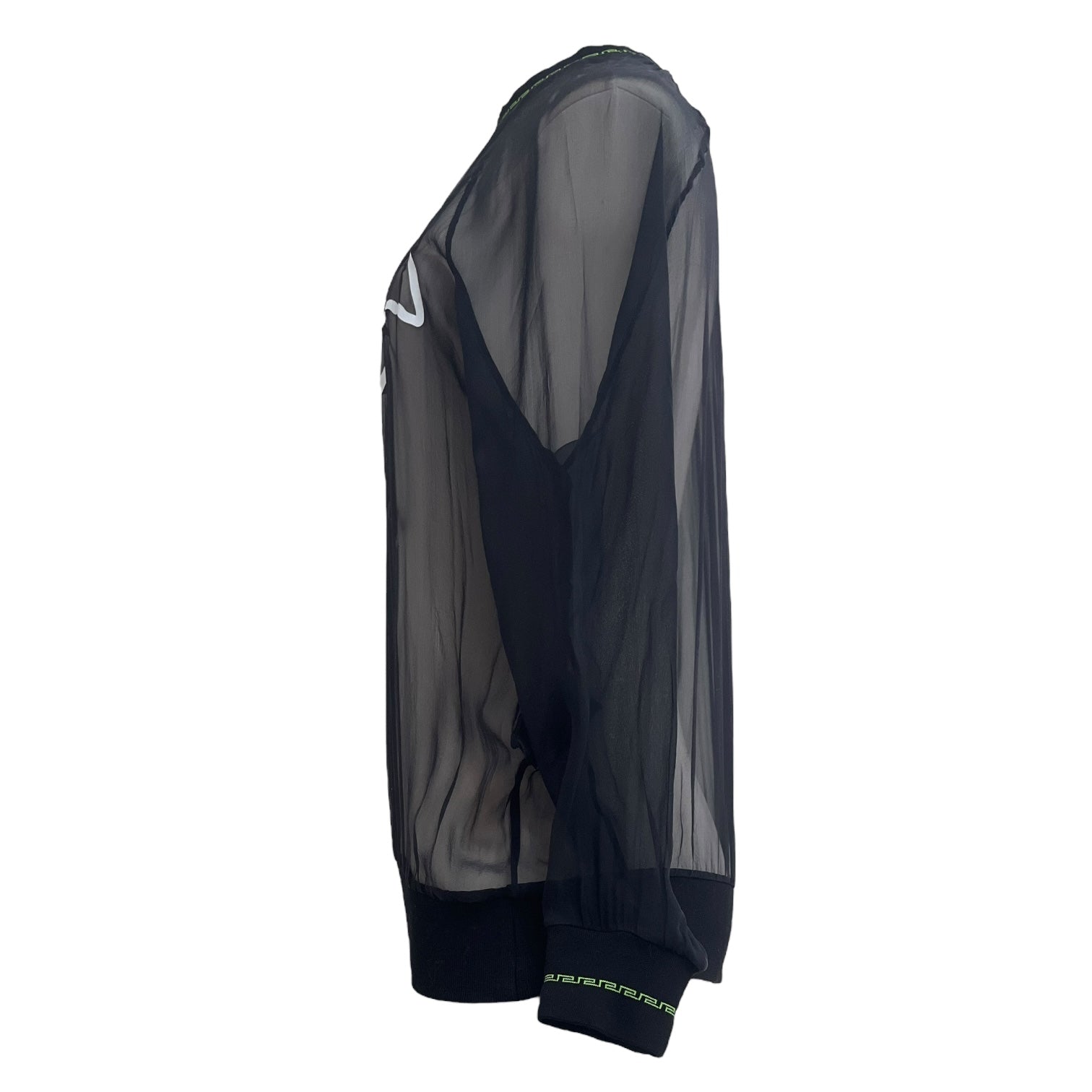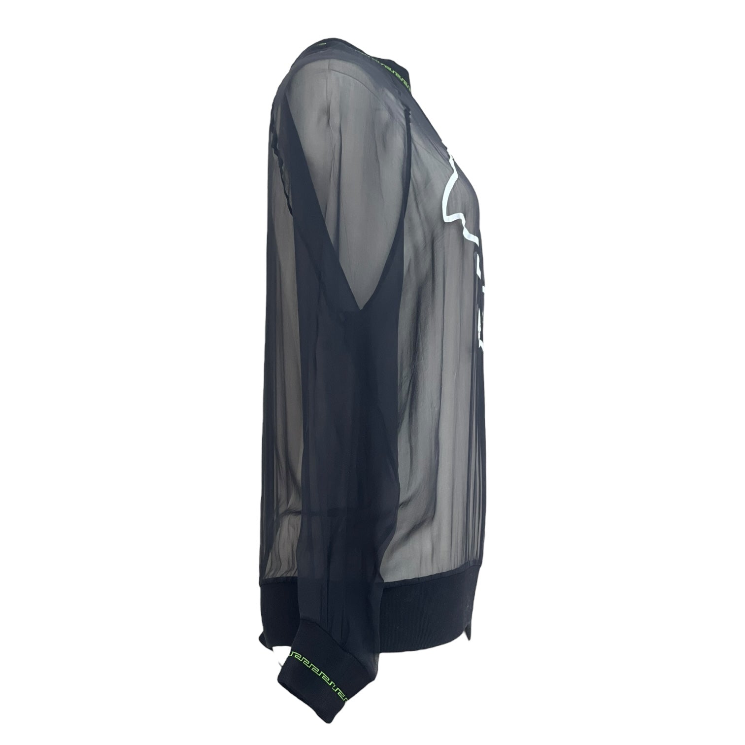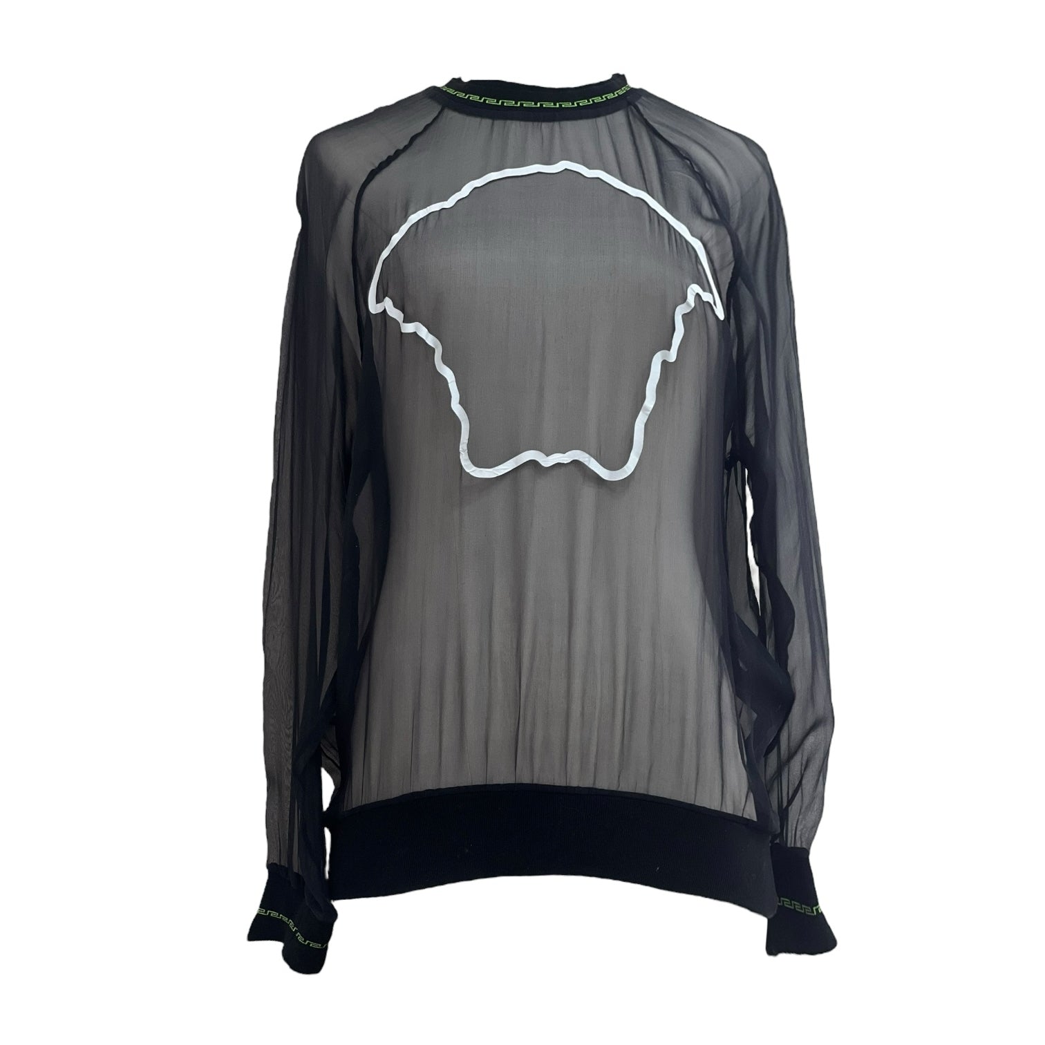 The Versace Black Sheer Long Sleeve Top combines elegance and allure with its lightweight, translucent fabric. Perfect for making a confident statement, it pairs effortlessly with both casual and formal outfits, adding a touch of luxury to your style.